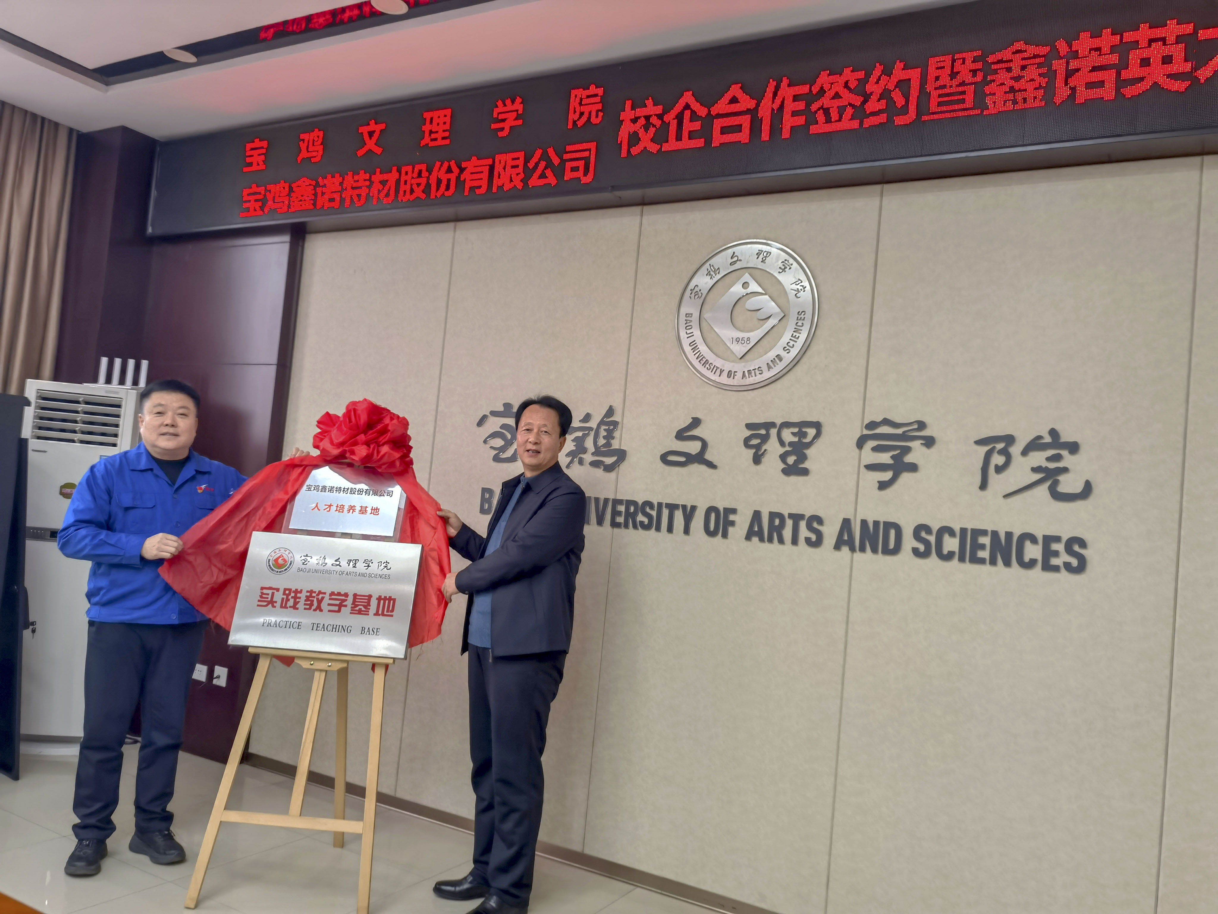寶雞文理學(xué)院教學(xué)實(shí)踐基地、鑫諾特材人才培養(yǎng)基地揭牌