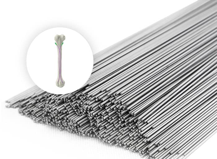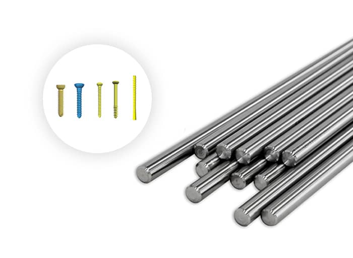 創傷用鈦及鈦合金材料,同產品多批次物理性能和金相組織/高倍組織穩定。可為熱壓成型骨板、CNC成型骨板等定制化生產具有不同物理特性要求的板材;為金屬骨針、各類螺釘、以及髓內釘產品提供遠超標準的棒絲材料,滿足高精度加工需求。