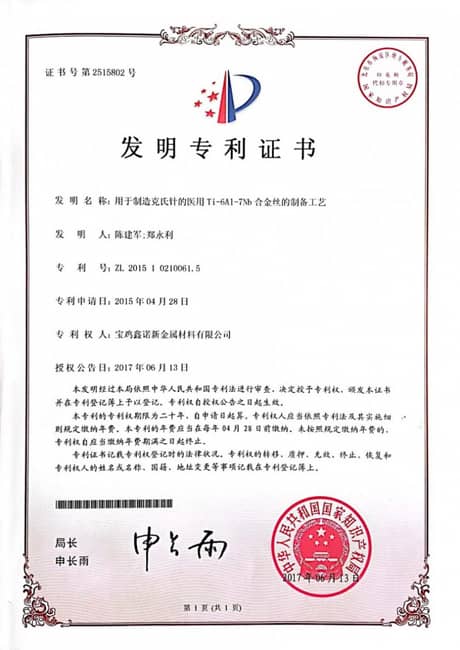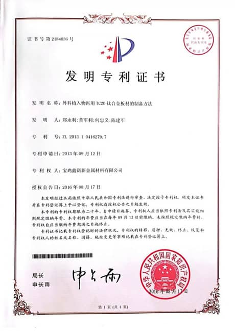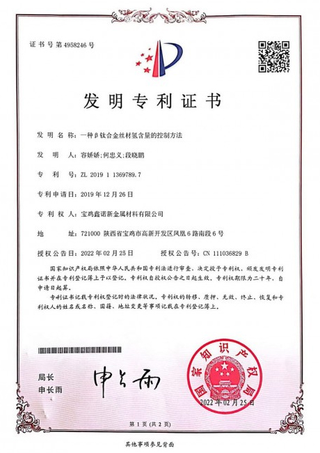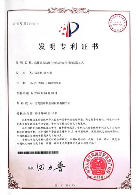 2014認定為寶雞市企業技術中心,承接國家科技部高性能高精度醫用鈦棒材項目